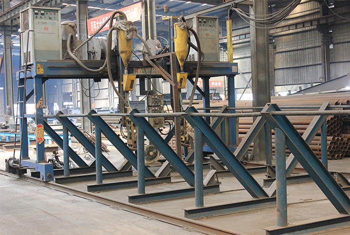 引進(jìn)了國內(nèi)專業(yè)的全自動(dòng)管相貫線等,離子切割機(jī)、網(wǎng)架桿件雙自動(dòng)焊接機(jī)、網(wǎng)架支托自動(dòng)焊接設(shè)備、龍門埋弧焊及數(shù)控火焰切割機(jī)等優(yōu)質(zhì)生產(chǎn)設(shè)備